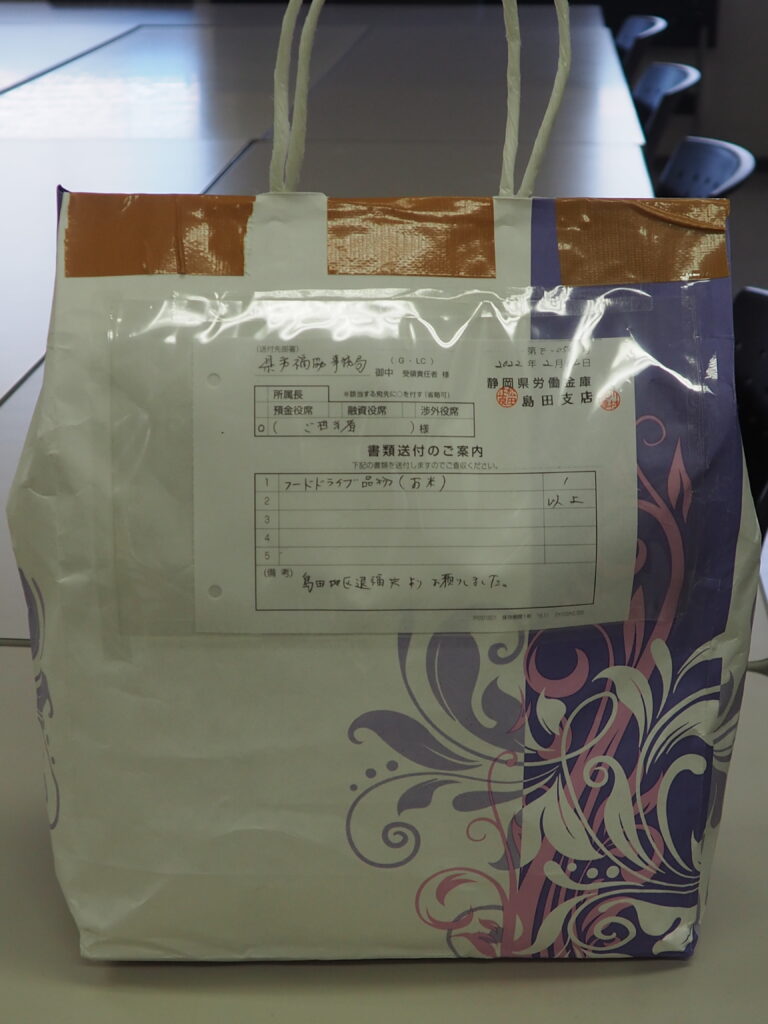 島田地区退福共と㈱デンソーから食品をいただきました。