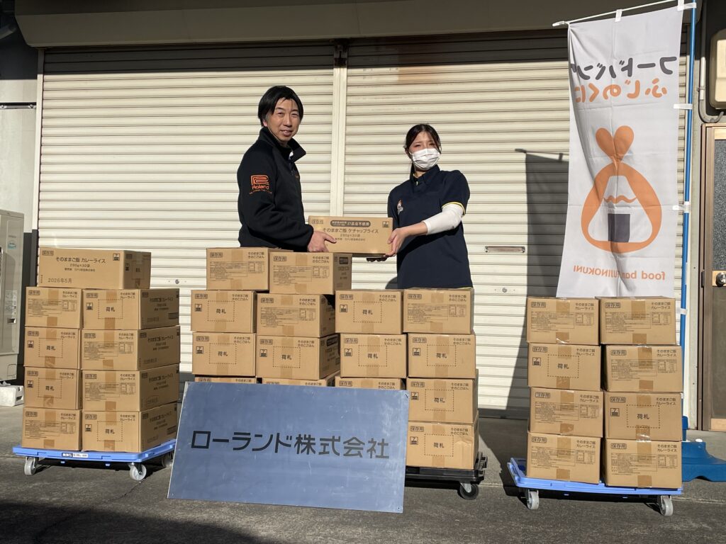 ローランド株式会社様は9月の寄贈に引き続き2度目の寄贈で、今回は1,870kgもの食品を寄贈していただきました。